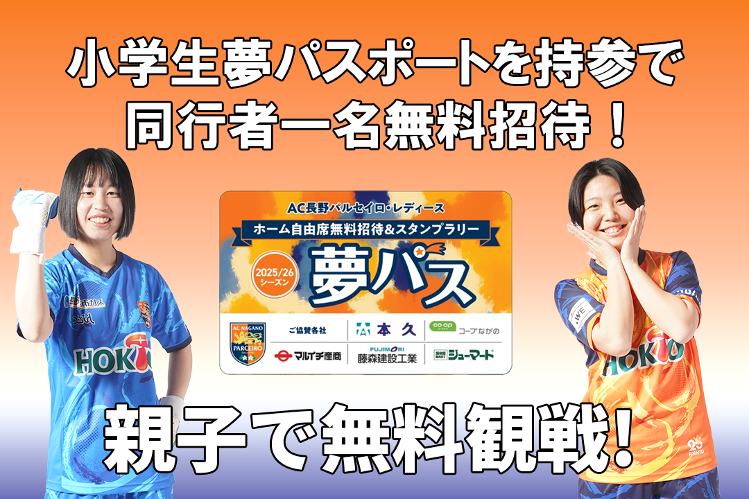 多くのお子さまに観戦いただきたいという想いから、WEリーグカップでも夢パスポートは対象試合といたします。夢パスポートをお持ちの方は入場ゲートまでお越しください。お菓子のお渡しとスタンプラリーは実施いたしません。夢パス申込はこちら