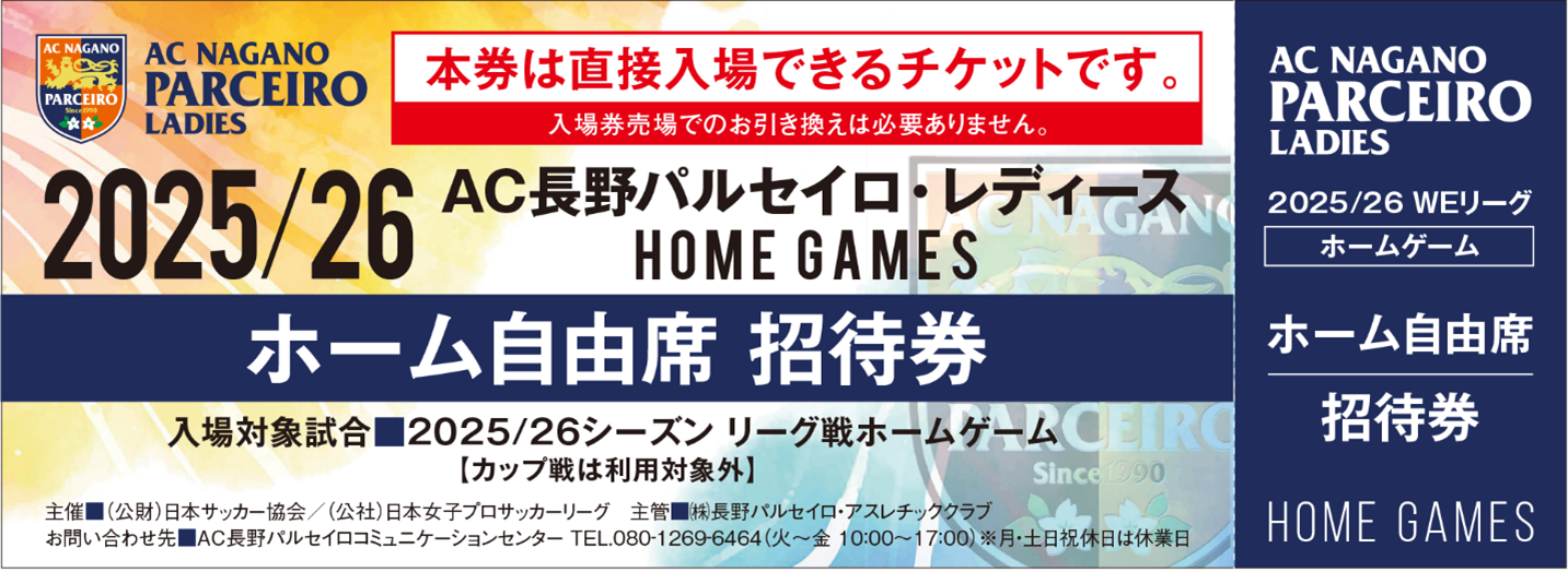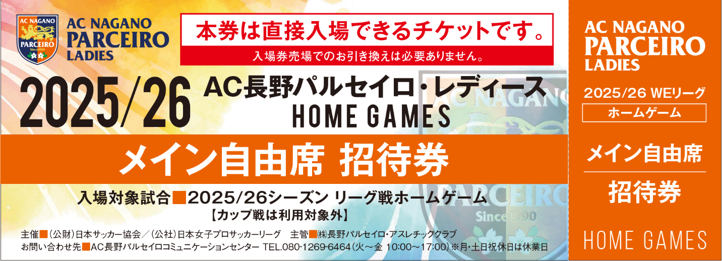 女性限定で抽選、200名様開幕戦に無料招待!是非ともスタジアムでAC長野パルセイロ・レディースの応援をよろしくお願いいたします。