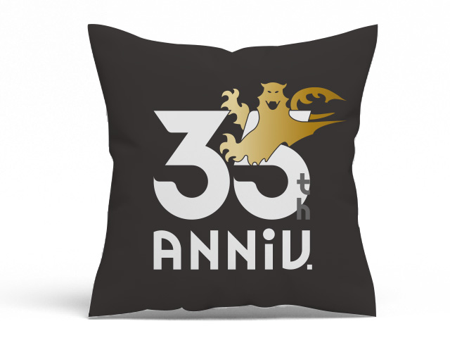 25TOPのユニ柄デザインのクッションです。反対には35周年記念ロゴを入れた、今シーズンだけの特別なクッションです。