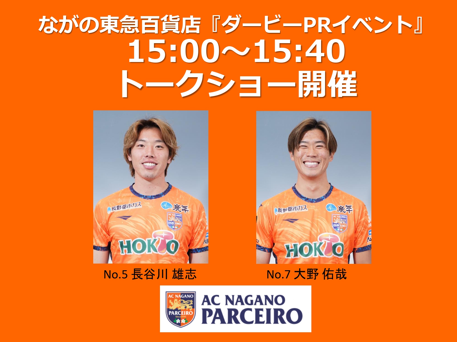 このたびAC長野パルセイロでは、7月19日(土)のダービーに向けて、7月13日(日)にながの東急百貨店様にて事前PRイベントを開催いたします。